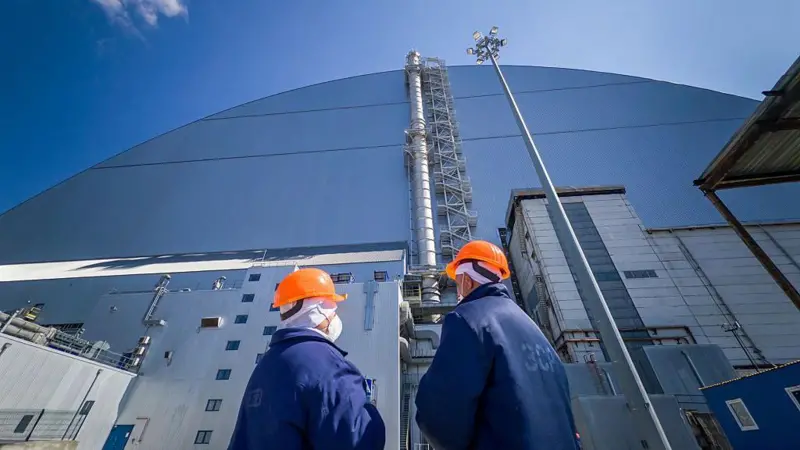 2016年,“石棺”外部建成了“新安全禁闭体”——一座由国际社会资助、设计寿命为100年的大型拱形结构,用于密封隔离反应堆残余物。然而,2025年2月,一架俄罗斯无人机击中了这座拱形结构,引发火灾并造成严重损坏。
