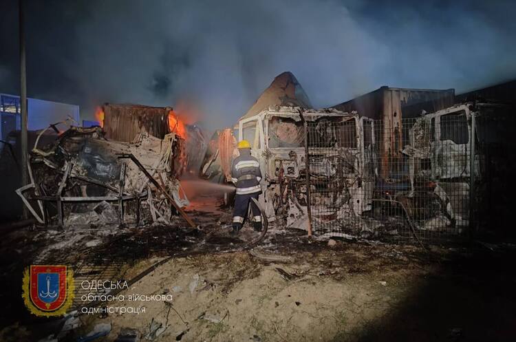敖德萨州军事行政首长基佩尔上午报道,俄罗斯人在夜间用无人机袭击了该州两个小时。大部分无人机被击落,但伊兹梅尔地区的港口基础设施遭击中。检查站大楼、仓库和大约30辆卡车也遭到破坏。6辆卡车起火了,消防员已经将火扑灭。2名卡车司机因此受伤。其中1人当场接受了治疗,另一人因手臂严重受伤被送往医院。