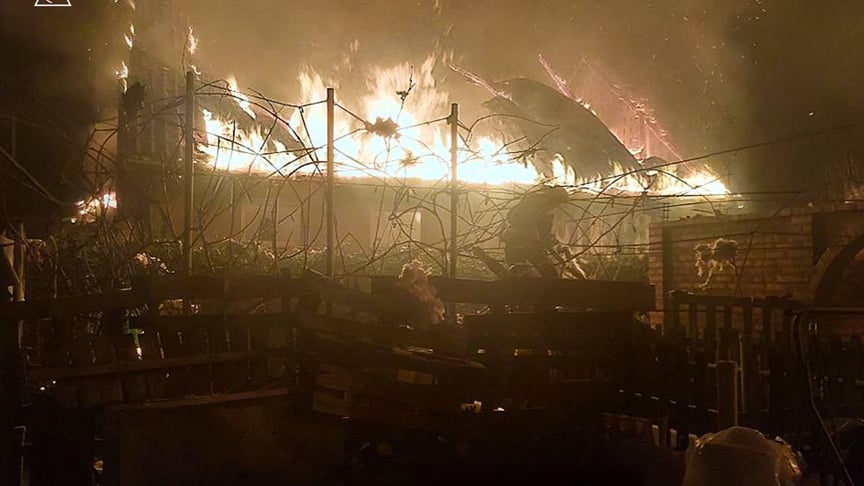 被击中的地方发生了火灾。邻近的一栋公寓楼也遭到破坏,居民正在疏散。附近的车库和汽车起火,六人获救,五人受伤。
