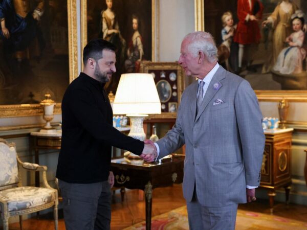 英国国王查尔斯三世在布莱尼姆宫会见了乌克兰总统泽连斯基。 英….